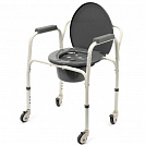 Кресло-туалет Barry WC101 имеет стальную конструкцию, оснащен съемным ведром с крышкой и пластиковыми подлокотниками. Высота сиденья у стула регулируется. Вес изделия всего 6 кг, поэтому оно отличается компактностью и мобильностью, а также легко собирается и разбирается. Ножки с самоориентирующимися колесами имеют тормоза, что позволяет легко перемещать изделие.