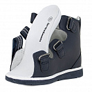 Обувь с двухсторонним высоким берцем, изготовленным с освобождением ахиллова сухожилия. Высокий жесткий берц фиксирует не только таранно-пяточный, но и голеностопный сустав, что при постоянном ношении этой обуви формирует правильное развитие суставных поверхностей и препятствует дальнейшему развитию деформации. Использование при этом съёмной сводоподдерживающей ортопедической стельки с углублением для размещения пятки позволяет правильно сформировать свод стопы.