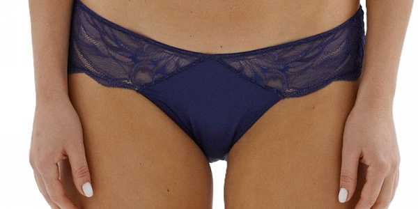 Трусы низкой посадки, выполнены из кружева. Передняя деталь – из гладкого микроволокна. Ластовица из хлопка.
