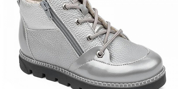 Данная модель нарядная, с элементами лаковой кожи, не предназначена для игр с мячом, прогулок на самокате или беговеле, торможения носками ботинок на качелях. Ультрамодные серебристые осенние ботинки для девочки на подкладке из шерстяной байки. Удобная застежка на молнию с двух сторон обеспечивает лёгкое раскрытие модели и максимальный комфорт при надевании. Спереди украшены декоративной шнуровкой в тон. Подкладка из шерстяной байки поддерживает комфортную температуру внутри обуви при погодных условиях от +5 до -5-7 градусов. Упругая анатомическая стелька для правильного формирования стопы. Жесткий фиксирующий задник с удлиненным крылом надежно стабилизирует голеностопный сустав во время ходьбы. Упругая, умеренно-эластичная подошва с протектором, имеющая перекат, позволяет повторить естественное движение стопы при ходьбе для правильного распределения нагрузки на опорно-двигательный аппарат ребенка.